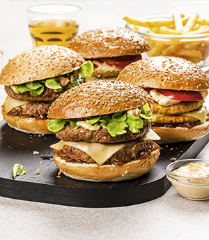 • 4 duebelen Hamburger mat Tranchen Emmental